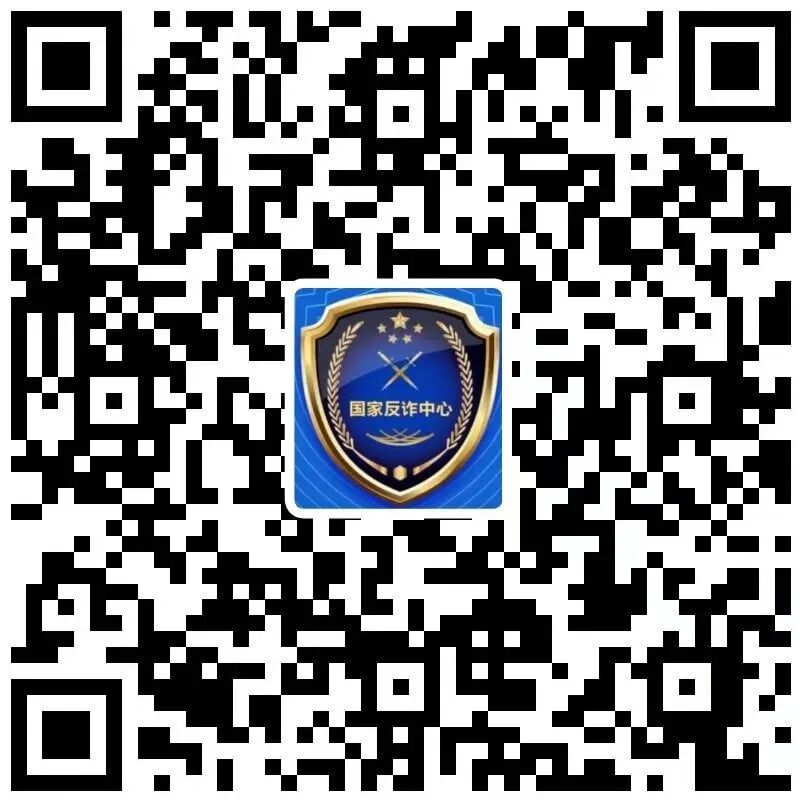 通过手机官方应用市场或扫描下方二维码下载安装“国家反诈中心”APP,不要通过陌生链接或扫描不明二维码下载APP。